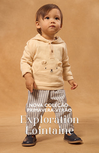 Sudadera bege com capuz para bebé menino