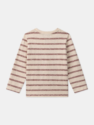 Ce polo en jersey à rayures vanille et camel est parfait pour les enfants stylés, alliant confort et esprit sportif. Ses trois étiquettes skateboard tissées et incrustées ajoutent une touche originale, tandis que le col contrasté blanc et les bords-côtes aux poignets apportent du raffinement. L'ouverture à trois boutons sur l'avant assure une fermeture pratique et élégante.