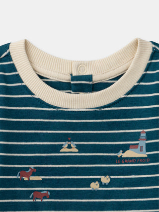 Body às riscas azuis para bebé rapaz