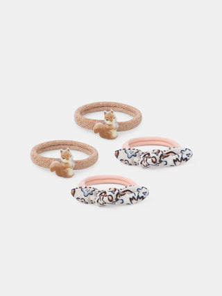 Desenhados para crianças felizes que gostam de brincar no outono. Estes elásticos mantêm o cabelo seguro sem danificá-lo. Os seus padrões de esquilo e laços florais acrescentam um toque natural e colorido.