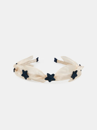 Fita Bege em Tule com Estrela Brilhante para Meninas