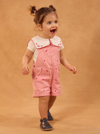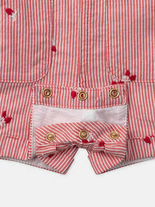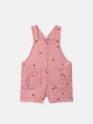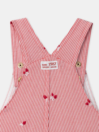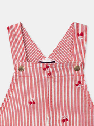 Salopete às riscas vermelhas com bordados de bagas para bebés meninas
